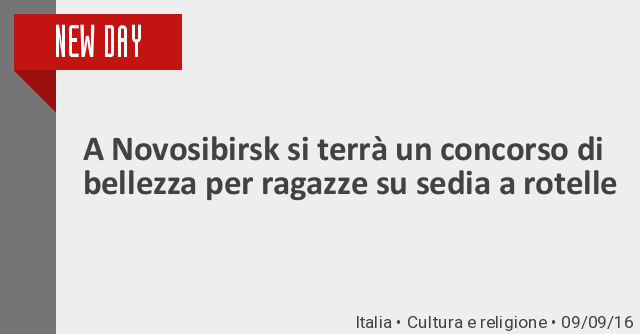 Un inusuale concorso di bellezza si svolgerà il prossimo week-end a Novosibirsk. A esso parteciperanno ragazze che si muovono su sedie a rotelle. Lo scopo dell'iniziativa, intitolata «Miss Integrazione», è «stimolare nella società un'immagine positiva delle persone con invalidità, attirare l'attenzione della società sulla necessità di creare un ambiente accessibile e un'integrazione sociale per le ragazze con capacità limitate». Il concorso si terrà grazie a delle donazioni.